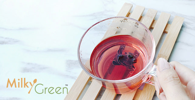 將適量洛神花(5-6朵)放入杯中,以60°C 左右熱水沖泡即可飲用。